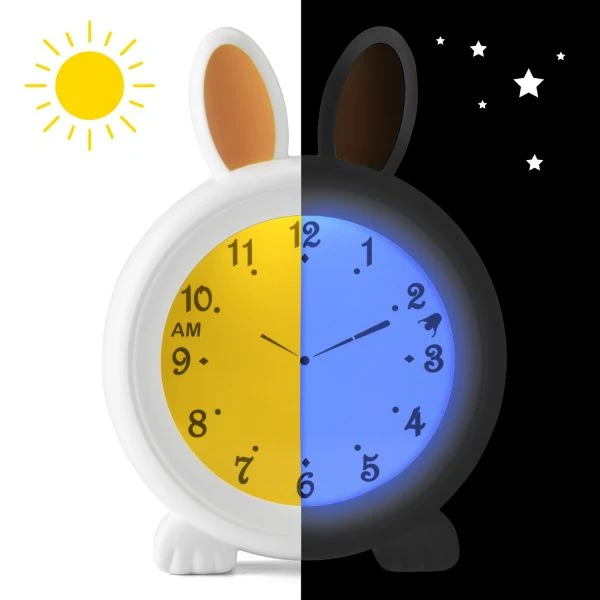 De Alecto BC-100 Bunny Slaaptrainer biedt verschillende opties. De slaaptrainer met konijnenoortjes laat een oranje nachtlampje zien wanneer het tijd is om op te staan en een blauw nachtlampje wanneer het nog tijd is om te slapen. De tijd is instelbaar zodat de slaaptrainer ook als wekker gebruikt kan worden. De kleurintensiteit van het nachtlampje is instelbaar in 7 standen. Met behulp van de meegeleverde USB kabel kan de slaaptrainer worden opgeladen. Op het moment dat de slaaptrainer opgeladen is, is deze draadloos en dus makkelijk te verplaatsen. Kortom; een slaaptrainer, wekker en nachtlampje in één!