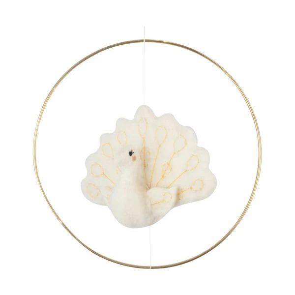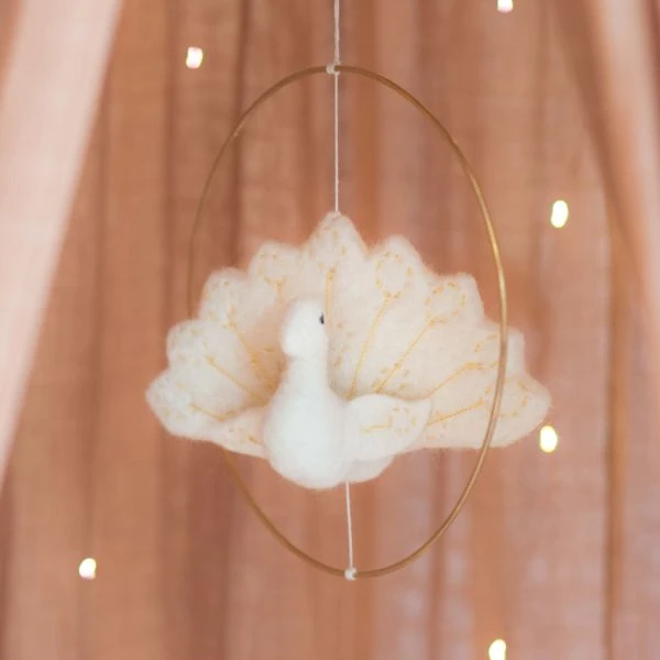 De Baby Bello Peafowl Mobiel is een stijlvolle toevoeging op de baby of kinderkamer. De mobiel is gemaakt van verschillende materialen en contrasten wat bijdraagt aan de ontwikkeling van je kindje. De mobiel is eenvoudig te bevestigen aan de wieg, box of ledikant met behulp van een lusje. Verder is de mobiel gemaakt van hoogwaardig materiaal.