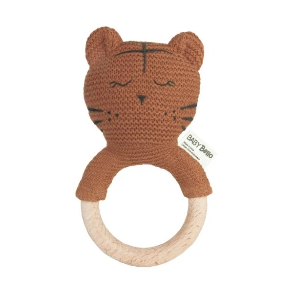 Met de Baby Bello Toby The Tiger Rammelaar kan je kindje lekker rammelen en knuffelen. Wanneer je de tijger heen en weer beweegt zal het vrolijk rammelen, dit zal je kindje erg interessant vinden. Dankzij de houten ring is de rammelaar gemakkelijk vast te pakken met kleine kinderhandjes. De ring kan ook dienen als bijtring wanneer de tandjes beginnen door te komen. Verder is de schattige rammelaar gemaakt van hoogwaardig materiaal. De collectie van Baby Bello is geïnspireerd door bedreigde diersoorten. Met uw aankoop doneert u aan Stichting No Wildlife Crime.