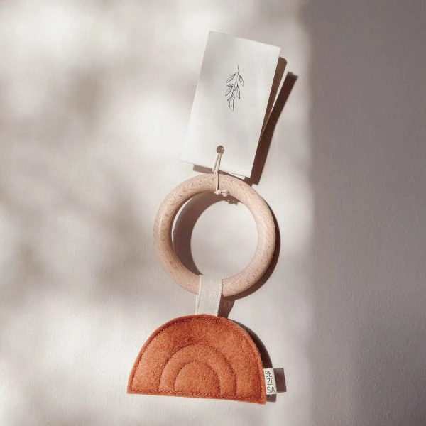 De BEZISA Sunset Bijtring bestaat uit een houten ring met een stoffen figuurtje waarop je kindje kan bijten. Hierdoor zal de pijn bij doorkomende tandjes verzacht worden. Het figuur is van binnen voorzien van knisperpapier, waar je kindje mee kan spelen. Door te spelen met en te bijten op het speeltje wordt de ontwikkeling van de fijne motoriek gestimuleerd. De producten van BEZISA zijn bewust gemaakt in neutrale kleuren, zodat je kindje niet overprikkeld wordt.