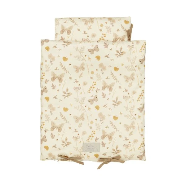 Dit Cam Cam Copenhagen Butterflies Poppendekbed past perfect in een poppenbedje. Zo kan je kindje zijn of haar lievelingspoppen en knuffelberen onder stoppen. De dekenhoes is voorzien van een mooie print en heeft onderaan schattige strikjes.