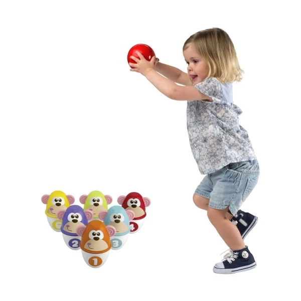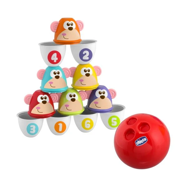 Met het Chicco Monkey Strike Bowlingspel zal je kindje zich urenlang vermaken en heerlijk kunnen spelen. Het bowlingspel bestaat uit 6 gekleurde kegels die ieder een verschillende cijfer hebben. Op die manier leert je kindje cijfers te herkennen. Doordat de kegels uit twee delen bestaat kan je kindje de leukste combinaties maken. Met de meegeleverde bal kan je kindje de kegels omver werpen. Hoe meer kegels er omver liggen, hoe beter! De vrolijke kleurtjes zullen je kindje uitdagen om ermee te spelen. Verder draagt het speelgoed mee aan de ontwikkeling van je kindje.