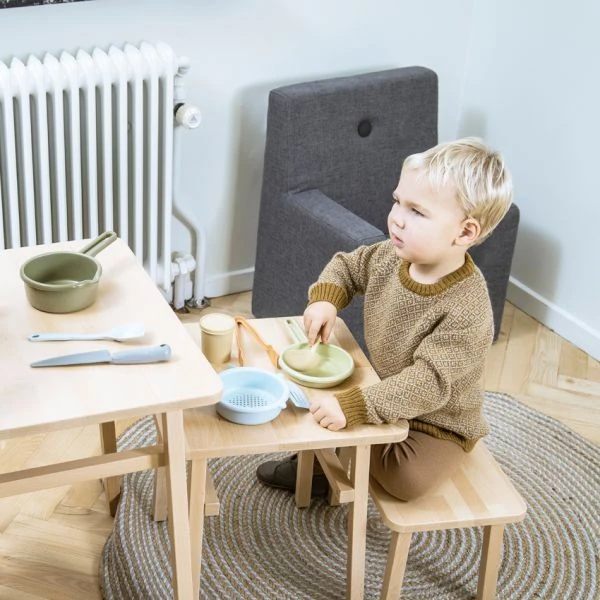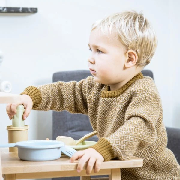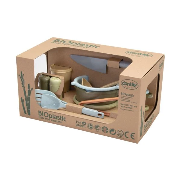 Deze Dantoy BIO Keuken Set kan je kindje uitstekend gebruiken in zijn of haar speelkeukentje. De stijlvolle keuken set bestaat uit de volgende 12 onderdelen: een koekenpan, steelpan, zeef, mes, soeplepel, tang, spatel, lepel, peper, zout en een pot. Het speelgoed is geschikt voor binnen, maar kan ook uitstekend buiten gebruikt worden. Door het spelen met het speelgoed wordt de ontwikkeling van de fantasie en de fijne motoriek gestimuleerd. Verder is het speelgoed van Dantoy gemaakt van 100% recyclebaar plastic en is het geschikt voor in de vaatwasser.