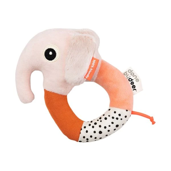 Deze Done By Deer Elphee Ringrammelaar – Powder is gemakkelijk vast te houden met kleine kinderhandjes en daarom leuk als eerste speelgoed voor je kindje. Als je de rammelaar heen en weer beweegt hoor je grappige geluiden, wat de zintuigen van je kindje stimuleert. Daarnaast is de rammelaar voorzien van een gat waardoor je kindje deze gemakkelijk zelf vast kan pakken. Verder is Elphee gemaakt van zacht materiaal waardoor je kindje er lekker mee kan knuffelen. Kortom, de ideale rammelaar voor je kindje of om weg te geven als cadeautje.