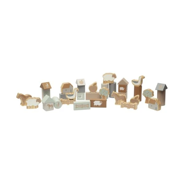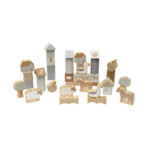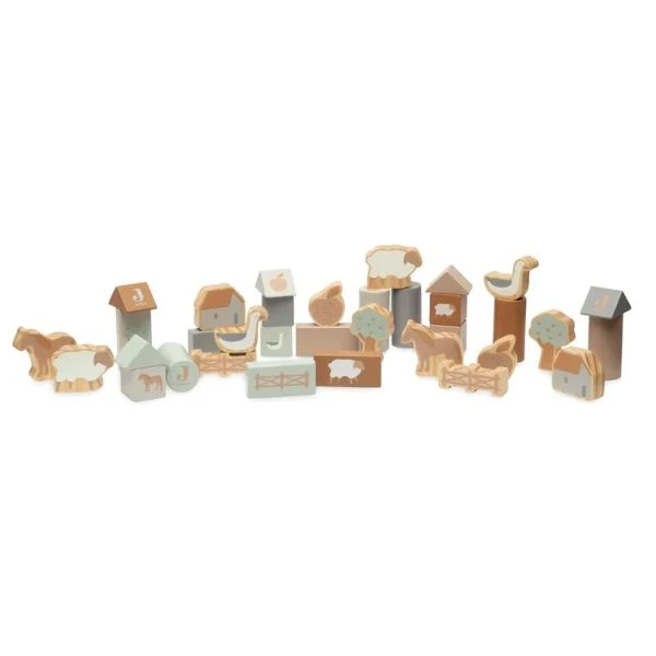 Met de Jollein Farm Blokkenset ontwikkelt je kindje de hand- oog coördinatie op een speelse manier. In de ton zitten vijftig stukken in verschillende kleuren en vormen waar je kindje mee kan bouwen, stapelen en spelen. Door er mee te spelen komt de fantasie van je kindje tot leven en maakt het de mooiste bouwwerken. Wanneer je kindje klaar is met spelen kunnen ze makkelijk terug in de ton. De blokkenset wordt geleverd in een handige opbergdoos.