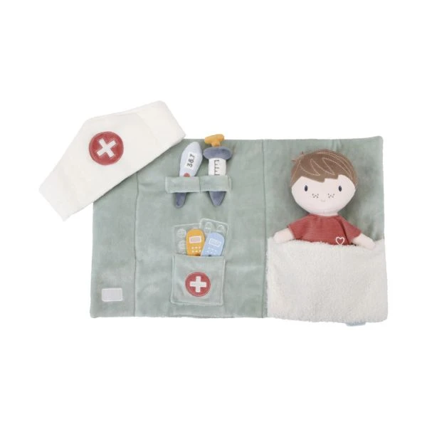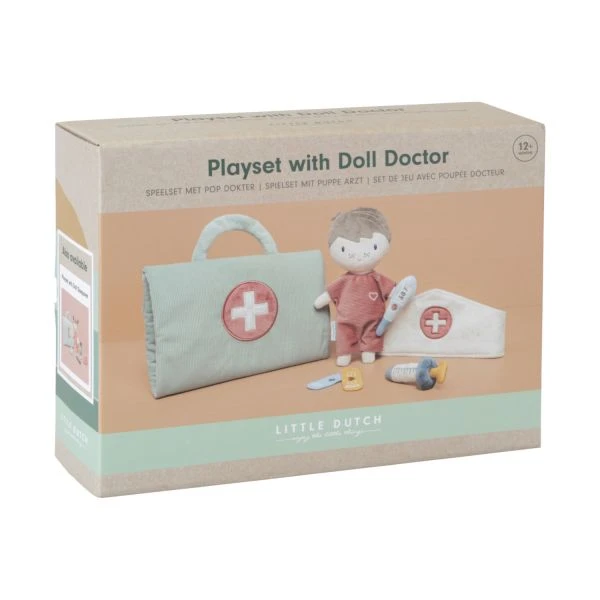 Met de Little Dutch Dokterspop Set kan je kindje zichzelf urenlang vermaken. De heerlijke zachte dokterskoffer kan makkelijk opengevouwen worden tot een ziekenhuisbed met deken voor pop Jim. Ook bevat de koffer een thermometer, een spuit en pleisters om de wonden te verzorgen. Daarnaast is de koffer gemakkelijk mee te nemen. Verder is de set gemaakt van hoogwaardig materiaal en geschikt voor kinderen vanaf 12 maanden. Tip! Leuk om als cadeau te geven.