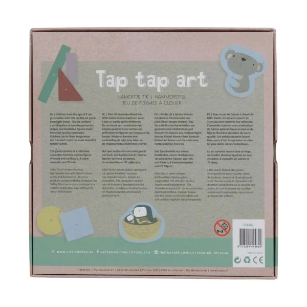 Met dit Little Dutch Hamertje Tik kan je heerlijk timmeren en spelen. Het spel bevat verschillende houten vormen, afbeeldingen van karton, 70 spijkertjes en 4 voorbeelden waardoor je kindje eindeloos verschillende figuren in elkaar kan zetten. Dankzij hamertje tik kan je kindje vaardigheden ontwikkelen op een speelse manier. Verder is het hamertje tik spel gemaakt van hoogwaardig materiaal en veilig voor je kindje om mee te spelen.