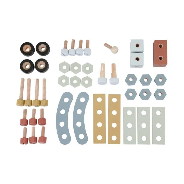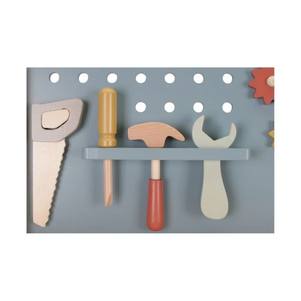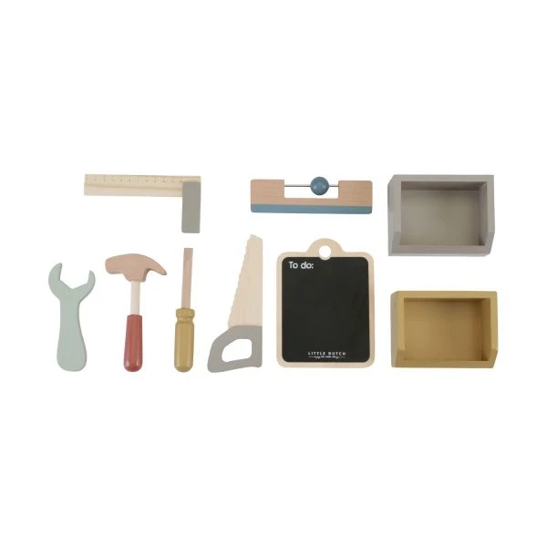 Met de Little Dutch Houten Werkbank kan je kindje zichzelf urenlang vermaken als kleine klusser. Je kindje kan er van alles op timmeren, zagen en ook een auto op bouwen. De werkbank wordt geleverd met veel verschillende onderdelen waaronder een schroevendraaier, hamer, blokjes, plankjes, boutjes en moertjes. Daarnaast is de werkbank gemaakt van hoogwaardig materiaal en is deze afgewerkt met kindvriendelijke verf op waterbasis. Verder stimuleert de prachtige werkbank van Little Dutch het rollenspel, de creativiteit en de motorische vaardigheden van je kindje. Geschikt vanaf 3 jaar.