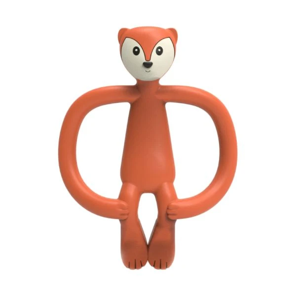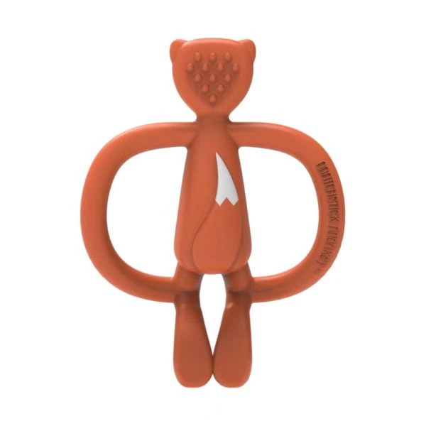 Deze Matchstick Monkey Bijtring Fudge De Fox is perfect wanneer de tandjes van je kindje beginnen door te komen! Het lichtgewicht speeltje is voorzien van een ergonomisch ontwerp zodat het makkelijk vast kan worden gehouden met kleine kinderhandjes. Doordat je kindje op het soepele speeltje kauwt en sabbelt wordt het tandvlees zachter en de pijn verlicht. Aan de achterkant van de dino zitten bobbels waar je een verdovende gel, olie of zalf op kan smeren zodat dit direct op de pijnlijke plekken aankomt. Verder is de Matchstick Monkey bijtring BPA-vrij, niet-giftig, milieuvriendelijk en gemaakt van FDA goedgekeurde siliconen van voedingskwaliteit.