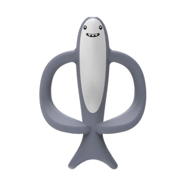 Deze Matchstick Monkey Bijtring Shreddy De Shark is perfect wanneer de tandjes van je kindje beginnen door te komen! Het lichtgewicht speeltje is voorzien van een ergonomisch ontwerp zodat het makkelijk vast kan worden gehouden met kleine kinderhandjes. Doordat je kindje op het soepele speeltje kauwt en sabbelt wordt het tandvlees zachter en de pijn verlicht. Aan de achterkant van de dino zitten bobbels waar je een verdovende gel, olie of zalf op kan smeren zodat dit direct op de pijnlijke plekken aankomt. Verder is de Matchstick Monkey bijtring BPA-vrij, niet-giftig, milieuvriendelijk en gemaakt van FDA goedgekeurde siliconen van voedingskwaliteit.