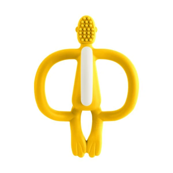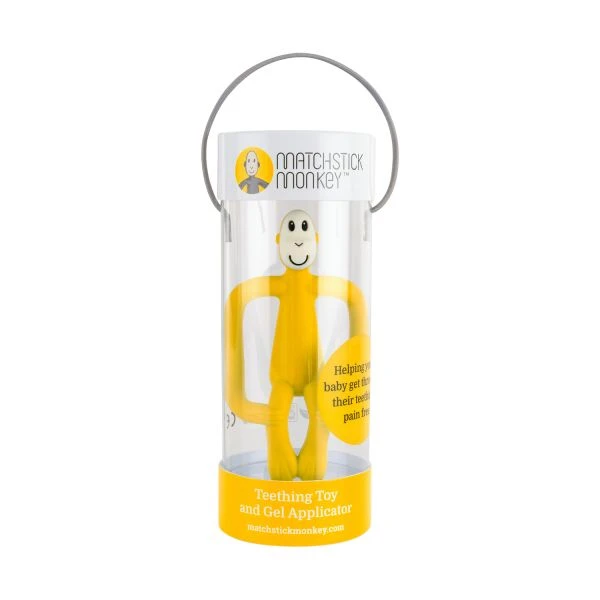 Deze Matchstick Monkey Bijtring Yellow is perfect wanneer de tandjes van je kindje beginnen door te komen! Het lichtgewicht speeltje is voorzien van een ergonomisch ontwerp zodat het makkelijk vast kan worden gehouden met kleine kinderhandjes. Doordat je kindje op het soepele speeltje kauwt en sabbelt wordt het tandvlees zachter en de pijn verlicht. Aan de achterkant van het aapje zitten bobbels waar je een verdovende gel, olie of zalf op kan smeren zodat dit direct op de pijnlijke plekken aankomt, zonder dat je kindje je kan bijten. Verder is de Matchstick Monkey bijtring BPA-vrij, niet-giftig, milieuvriendelijk en gemaakt van FDA goedgekeurde siliconen van voedingskwaliteit.
