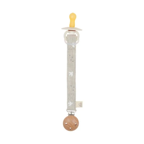 Deze Nanami Bird Speenkoord – Naturel is de ideale oplossing om de speen van je kindje altijd bij de hand te hebben. Door middel van een clip kan je de speenkoord eenvoudig aan de kleding van je kindje bevestigen en aan de andere kant kan je de speen met een lus vastmaken. De ketting is gemaakt van hoogwaardig materiaal en ziet er stijlvol uit.