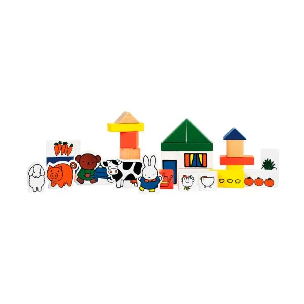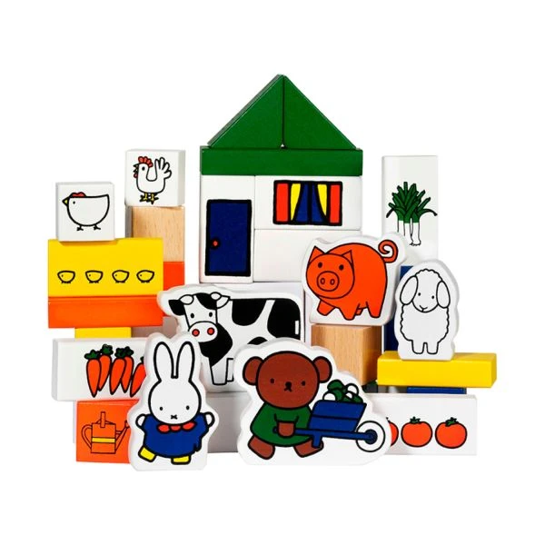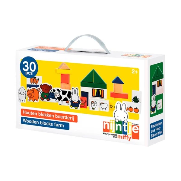 Met de Nijntje Boerderij Blokken – Hout ontwikkelt je kindje de hand- oog coördinatie op een speelse manier. In de ton zitten vijftig stukken in verschillende kleuren en vormen in het boerderij thema waar je kindje mee kan bouwen, stapelen en spelen. Door er mee te spelen komt de fantasie van je kindje tot leven en maakt het de mooiste bouwwerken. Wanneer je kindje klaar is met spelen kunnen ze makkelijk terug in de ton. Aan de ton zitten twee handvatten zodat de blokjes overal mee naar toe kunnen.
