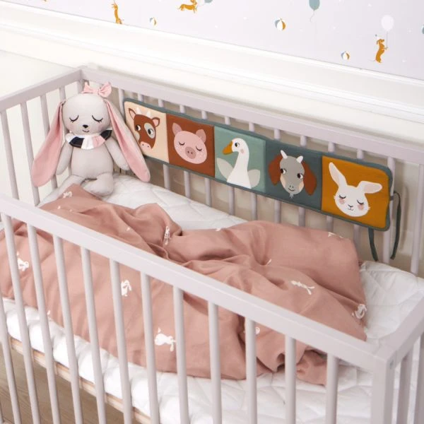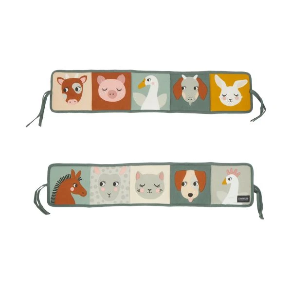 Het Roommate Country Life Fabric Book is een vrolijk boekje vol met leuke afbeeldingen voor je kindje. Het boekje kan eenvoudig worden opgevouwen zodat het overal mee naar toe kan en beschikt over 5 plaatjes aan iedere kant. Zo leert je kindje spelenderwijs kleurtjes, figuurtjes en patronen herkennen. Doordat het boekje is voorzien van gekreukt papier dat grappige geluidjes maakt, zal het je kindje uitdagen om er mee te spelen. Verder is het boekje gemaakt van hoogwaardig materiaal en voelt heerlijk zacht aan.
