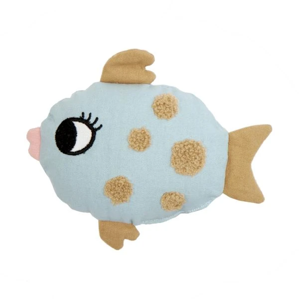 Een vrolijke Roommate Fish Rammelaar in de vorm van een vis. De rammelaar is gemaakt van comfortabel en zacht materiaal, zodat je kindje er mee kan knuffelen. Als je de knuffel heen en weer beweegt gaat het rammelen, dat zorgt voor een leuk geluid en het stimuleert de zintuigen van je kindje. Kortom de ideale rammelaar voor je kindje of om weg te geven als cadeau!