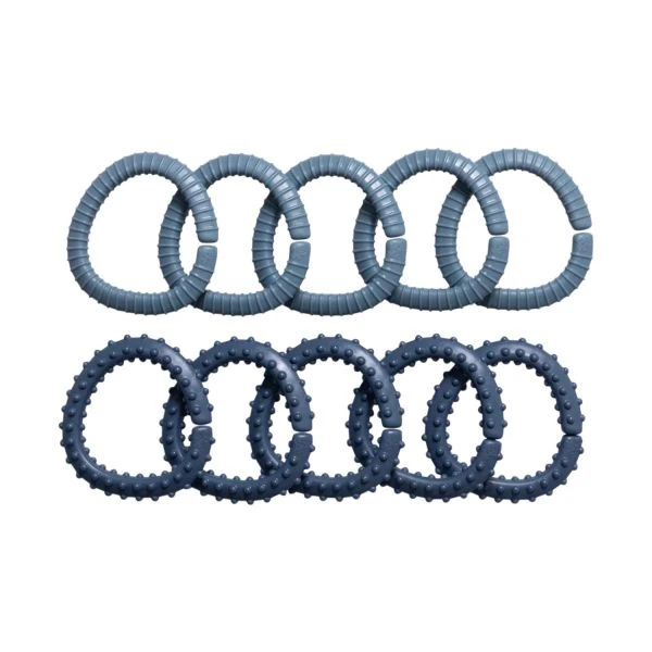 De Sebra – Speelgoedringen – 10 Stuks – Vintage Blue bestaat uit 10 ringen die los van elkaar gebruikt kunnen worden. De ringen zijn eindeloos te gebruiken. Je kan bijvoorbeeld speeltjes aan de ringen bevestigen voor aan de kinderwagen of buggy. Daarnaast kunnen de ringen ook gebruikt worden om een hydrofiele doek aan de kinderwagen te bevestigen of als speenkoord. Ook kunnen de speelgoedringen gebruikt worden als bijtringen. Verder zijn de ringen gemaakt van hoogwaardig materiaal.