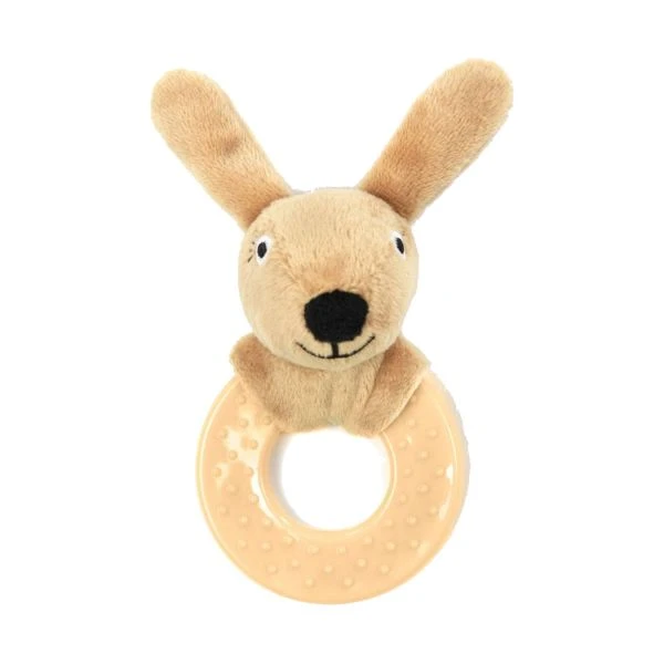 De Smallstuff Rammelaar Met Bijtring Hazel is een vrolijk speeltje waar je kindje heerlijk op kan kauwen en bijten. Het speeltje bestaat uit een rubberen bijtring en met een knuffeltje wat tegelijk ook rammelt. Deze beide activiteiten zal je kindje erg interessant vinden. Wanneer je kindje op het speeltje kauwt, zal het tandvlees verzachten en de doorkomende tandjes minder pijn doen. Verder is het bijtspeeltje gemaakt van hoogwaardig materiaal en gemakkelijk vast te houden met kleine kinderhandjes.