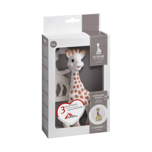 Schitterende knuffelset om in huis te hebben. De set bestaande uit Sophie de Giraf en een bijtring is erg leuk om weg te geven. Gemaakt van natuurlijk rubber en verf, helemaal veilig voor je kind. Bovendien bevordert het alle zintuigen van je kind. Mede dankzij het formaat van maar liefst 17 cm maakt het elke kind blij.