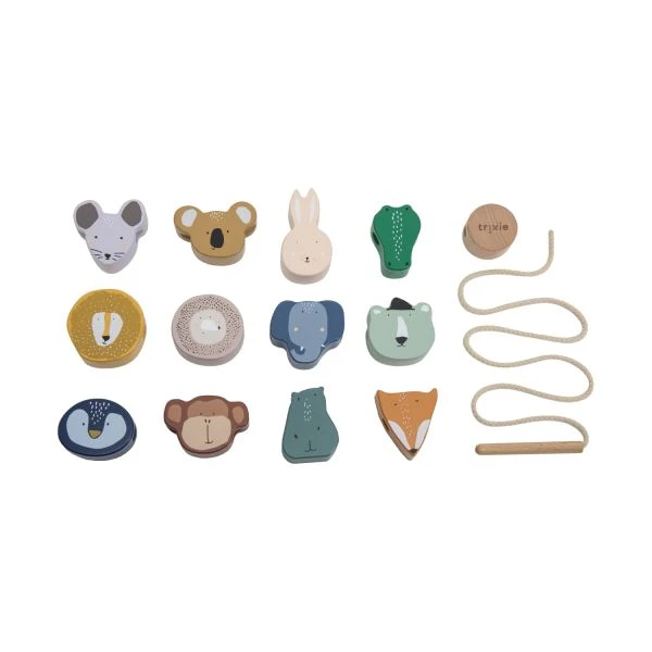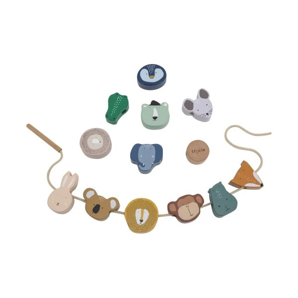 Met het Trixie Houten Dieren Rijgkralen kan je kindje zich urenlang vermaken. Je kindje kan alle dieren aan het touwtje rijgen met behulp van de houten naald. Door het spelen met de rijgkralen leert je kindje complexe bewegingen uit te voeren. Het speelgoed van Trixie is gemaakt van hout, wat er voor zorgt dat het erg stevig is.