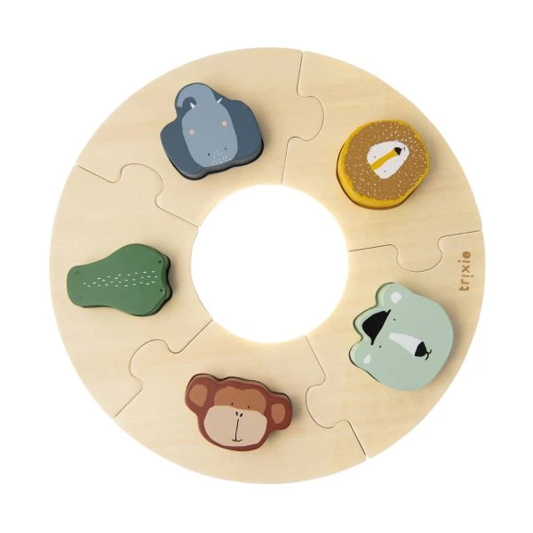 De Trixie Houten Ronde Puzzel zorgt voor urenlang speelplezier en leert je kindje spelen en puzzelen tegelijk. De puzzel bestaat uit 10 puzzelstukken met alle dieren van de Trixie serie uitbeelden. Dankzij de vrolijke kleurtjes wordt je kindje uitgedaagd er mee te spelen en ontwikkelt het de motorische vaardigheid. Verder is de puzzel gemaakt van hoogwaardig materiaal en is veilig om mee te spelen.