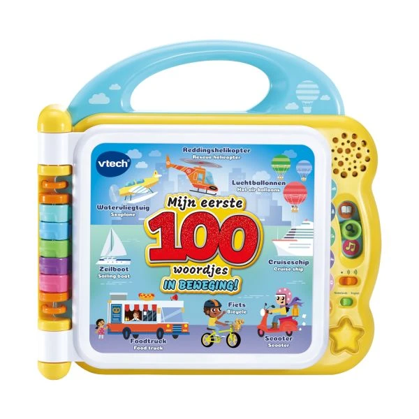 Met het Vtech Mijn Eerste 100 Woordjes Beweging Boek kan je kindje op een leuke en speelse manier zijn of haar woordenschat vergroten. Het boek zit vol grappige weetjes en geluiden van 100 bewegingen en vervoersmiddelen en is geschikt vanaf 1,5 tot 4 jaar.